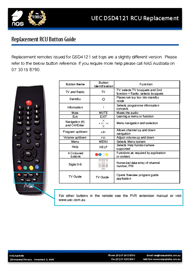 Service email enquiries:  uecsupport@nasaustralia.com.au