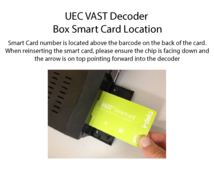 Access to the VAST service is controlled by the smart card which is supplied with the satellite set top box. The smart card is "married" to the set top it comes with and cannot be used with another set top.